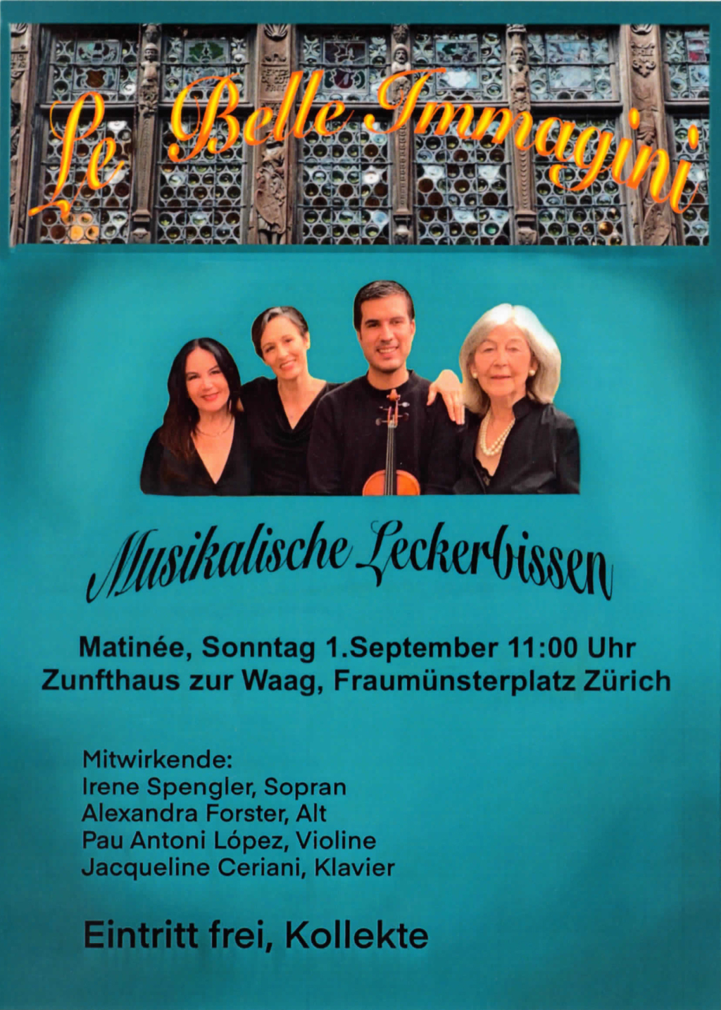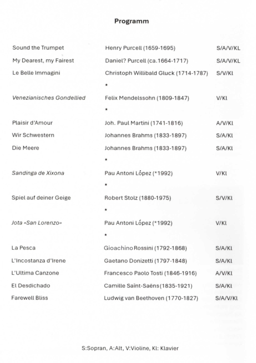 Diese Programme dauern alle ca. 60 Minuten und sind geeignet sowohl für Hauskonzerte wie auch im grösseren Rahmen. Sie lassen sich je nach Wunsch erweitern oder kürzen.
